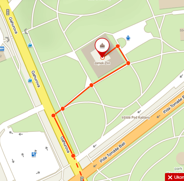 Příjezdová cesta pro vyložení / naložení zboží bude po hlavní silnici Gahurově, přímo k zlínskému zámku viz mapka.