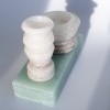 broušené vázy, mísy a šperky z taveného recyklovaného skla